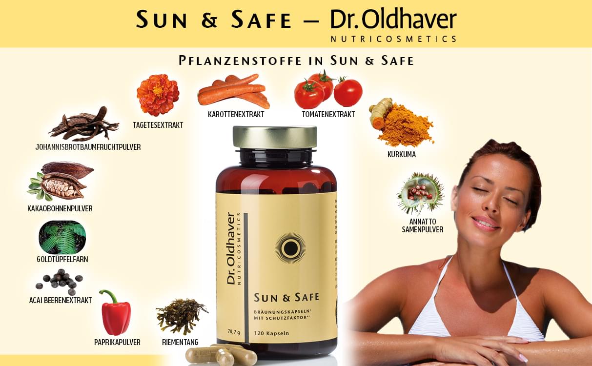 Sun & and Safe enthält Beta-Carotin aus natürlichen Quellen wie Karottenextrakt und Paprika. Im Gegensatz zu herkömmlichen Bräunungskapseln haben wir damit kein synthetisches Produkt, sondern das Beste aus der Natur in reiner Form, das deshalb auch für Raucher geeignet ist.