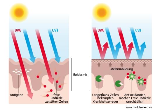 Wer gut aussieht, kommt in der Regel besser an und kann mehr erreichen. Und wer dazu auch noch schlau ist, beugt frühzeitig der Zellalterung vor. Unsere Atmosphäre ist durch allerlei Chemikalien belastet, die zusammen mit der UV-Strahlung einen gefährlichen Cocktail ergeben. Sehr gute Beta Carotin Tabletten tragen dem Rechnung, indem sie anders als gewöhnliche Bräunungskapseln mehr als den Beauty-Aspekt im Blick behalten. Deshalb enthält Sun & Safe antioxidative Schutzstoffe wie Vitamin C und E, Zink und Selen.